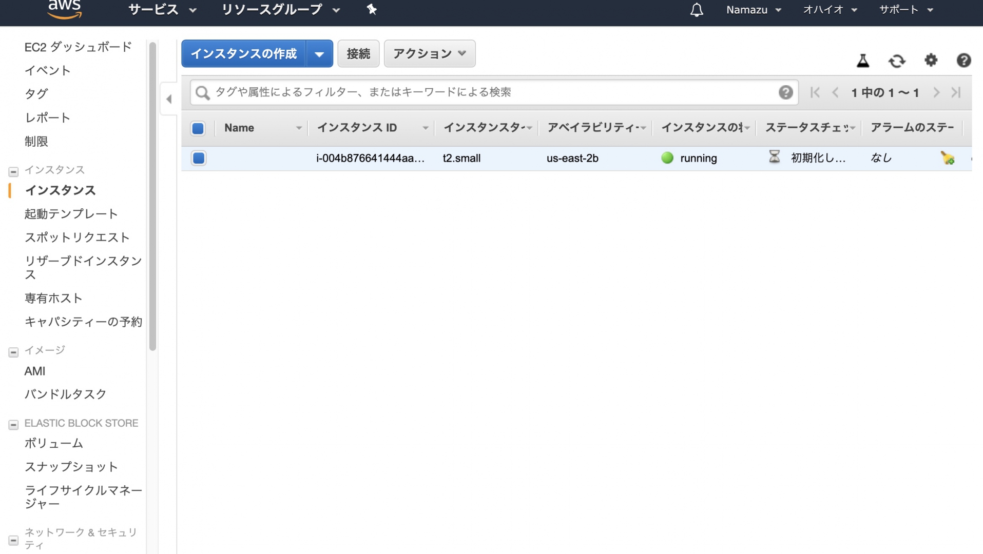 リージョンはオハイオ州のを使います。(安いので)