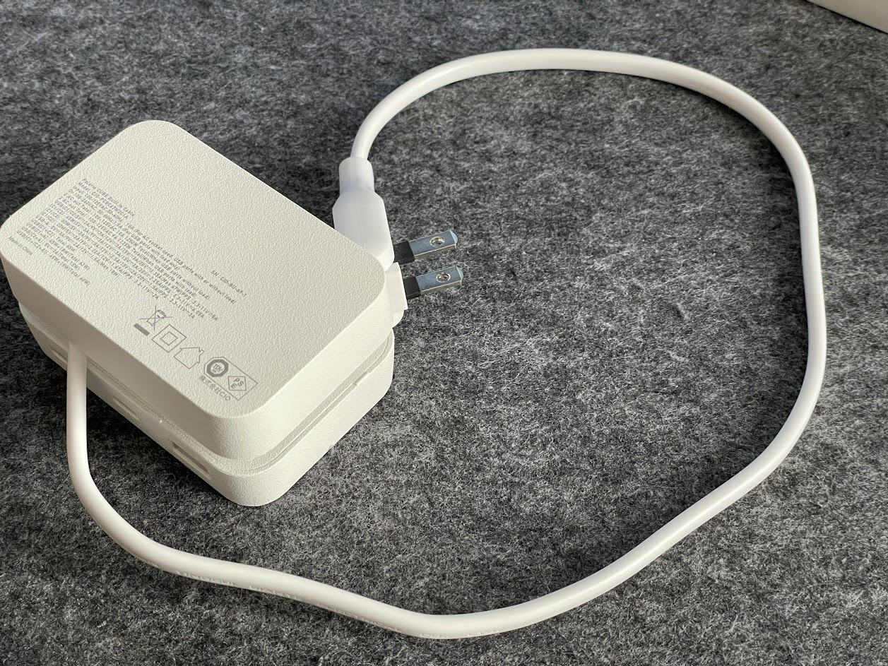 ですが今回の製品は67W充電器としては非常に大きいサイズのため表面積が稼げしっかりと放熱できているようです。触ってもほんのり暖かい程度です。これは嬉しい誤算でした。