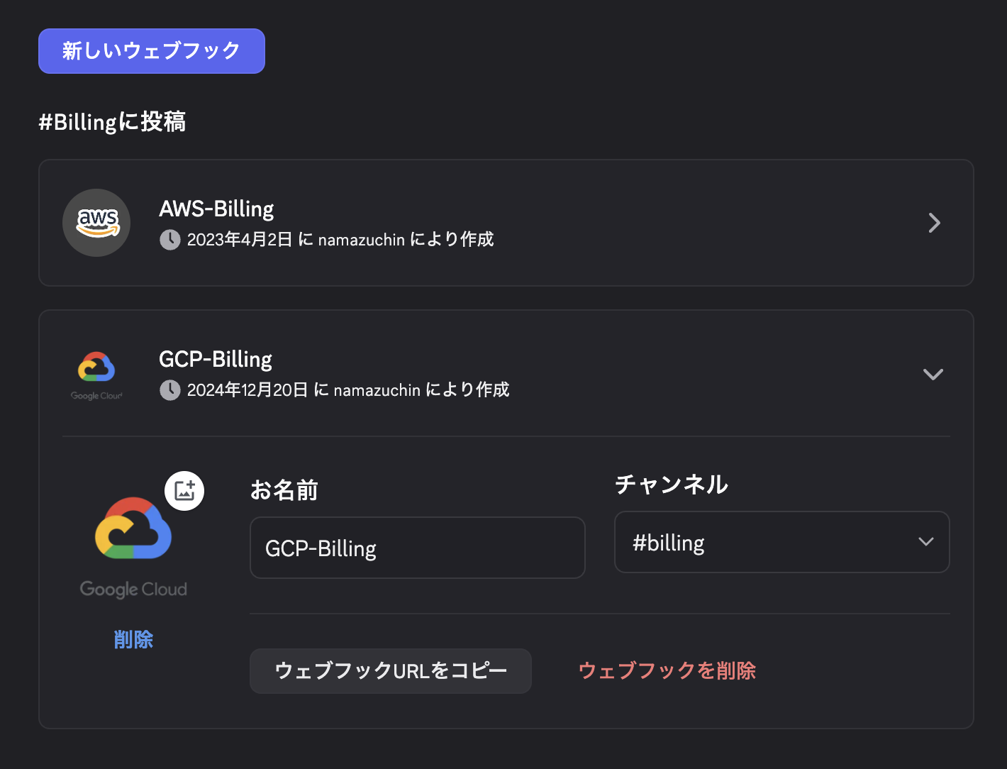 大量に利用しても1日の料金は数円程度とわずかですが、従量課金制のため、毎日の利用料金をDiscordに通知できると安心感が増します。