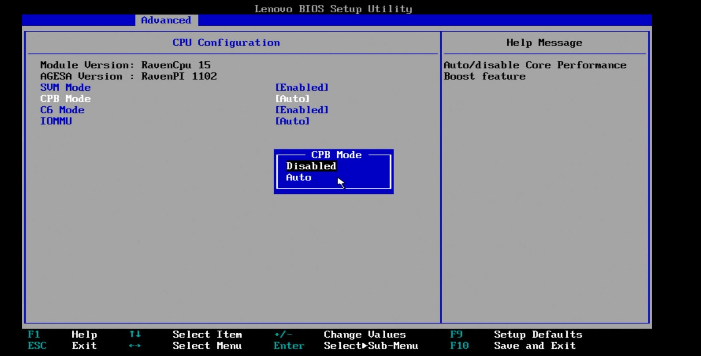 設定はBIOSで行います。AdvanceタブのCPU Setup → CPU ConfigurationでCPM Modeの設定があるのでDisabledにします。