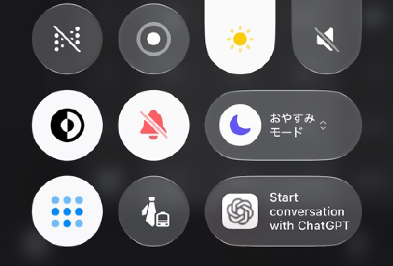 iPhoneではコントロールセンターにChatGPTの実行ボタンを置いています。このActionを使うとそのまま音声入力モードになるので外で手軽に質問を投げられて便利です。
