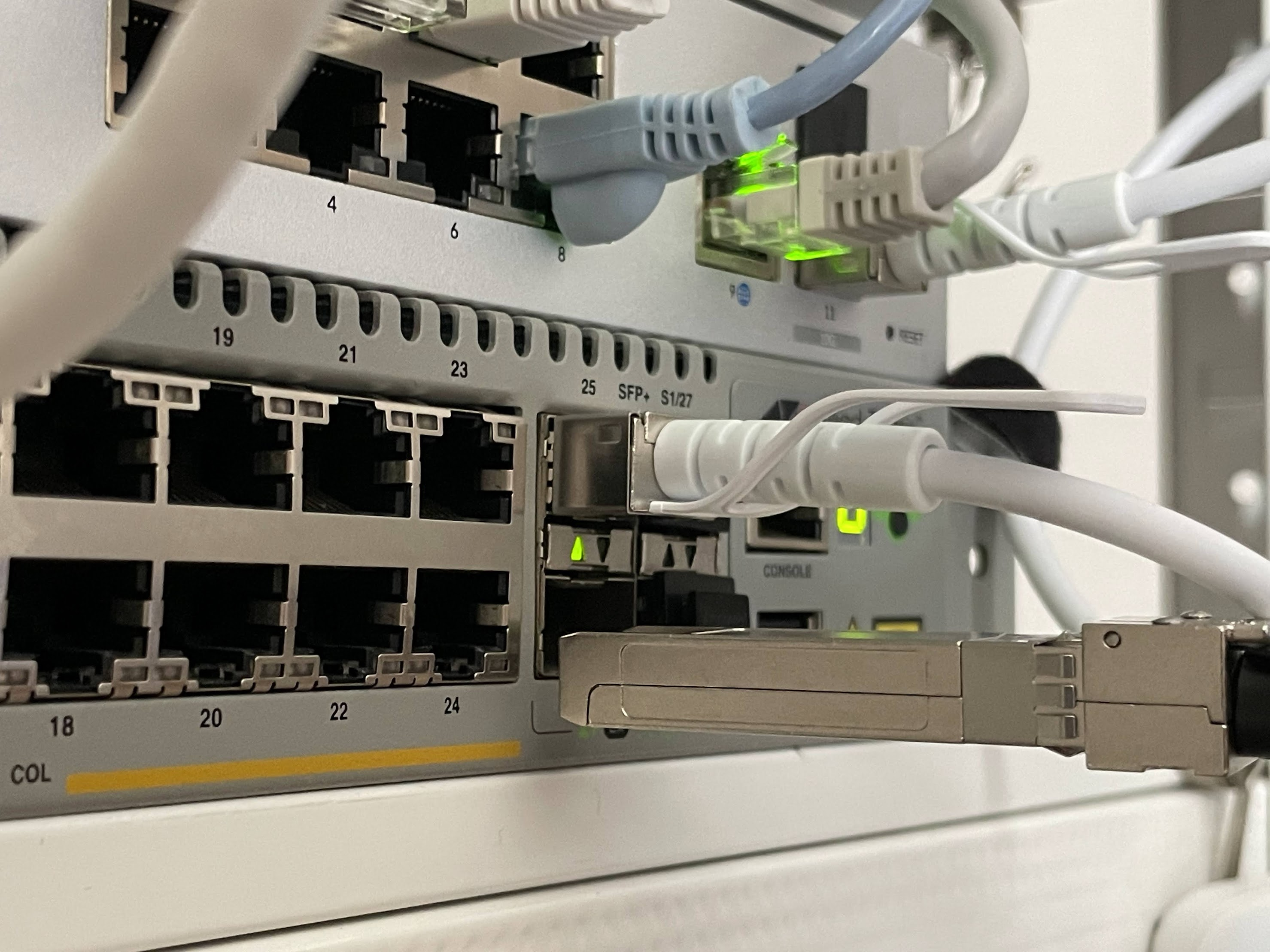 今回は10Gの接続にはSFP+を利用することにしました。10GBase-Tでの10G利用は周辺機器が高価であり、中古で手に入りやすいSFP+を使い倒します。 少し古い10G接続機材の10GBase-Tは爆熱になるものも多く、業務用として幅広く利用されているSFP+の方が現状では信頼性も高いだろうと考えています。 (元々は10GBase-Tでやるつもりですべての配線をCAT6aにしていたのですがね……)