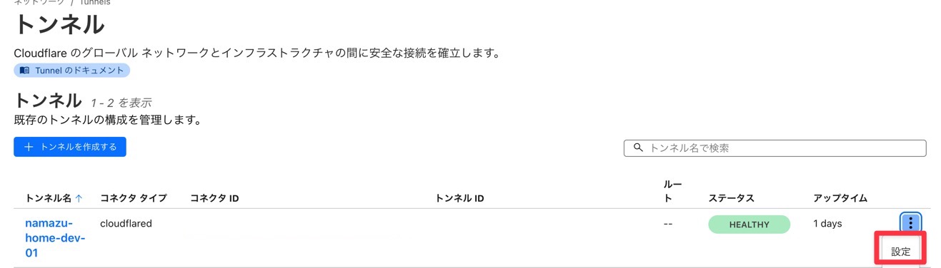 Cloudflare Tunnelの設定