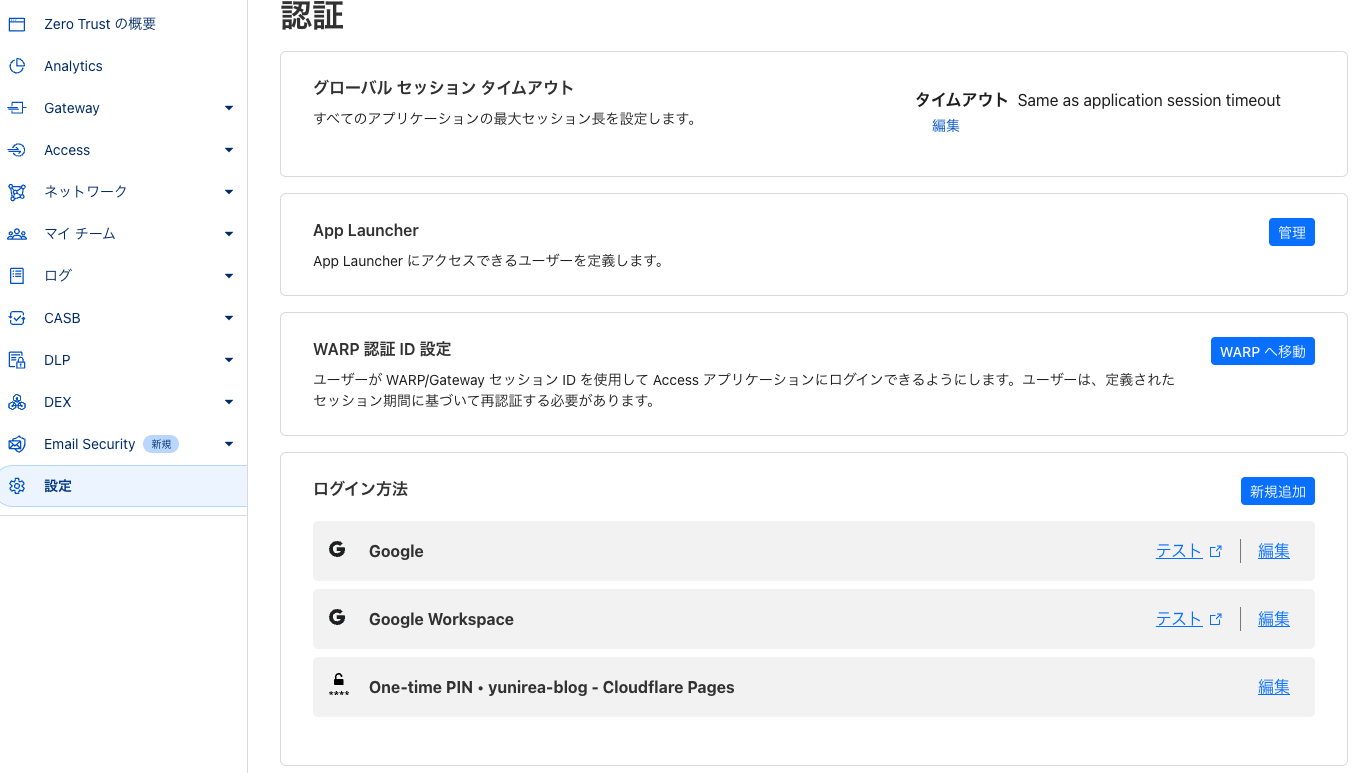 また同じファミリー製品であるCloudflare Accessを使って、特定のユーザーのみアクセスできるようにします。