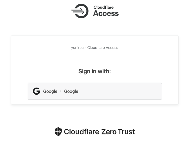 先ほどのCloudflare Tunnelの「Accessによる保護」の設定箇所でプルダウンからCloudflare Accessのアプリケーション名が選択できます。ここを選択することでアクセス可能になります。