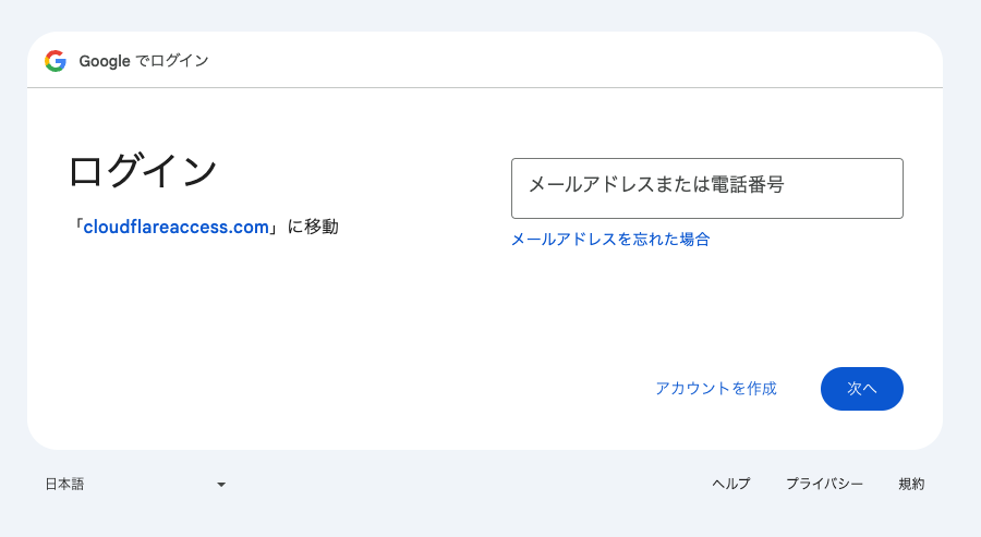 保存後先ほど設定したパブリックホスト名、今回の例では「minecraft-map.ynr.jp」にアクセスするとCloudflare Accessのサインイン画面に遷移します。