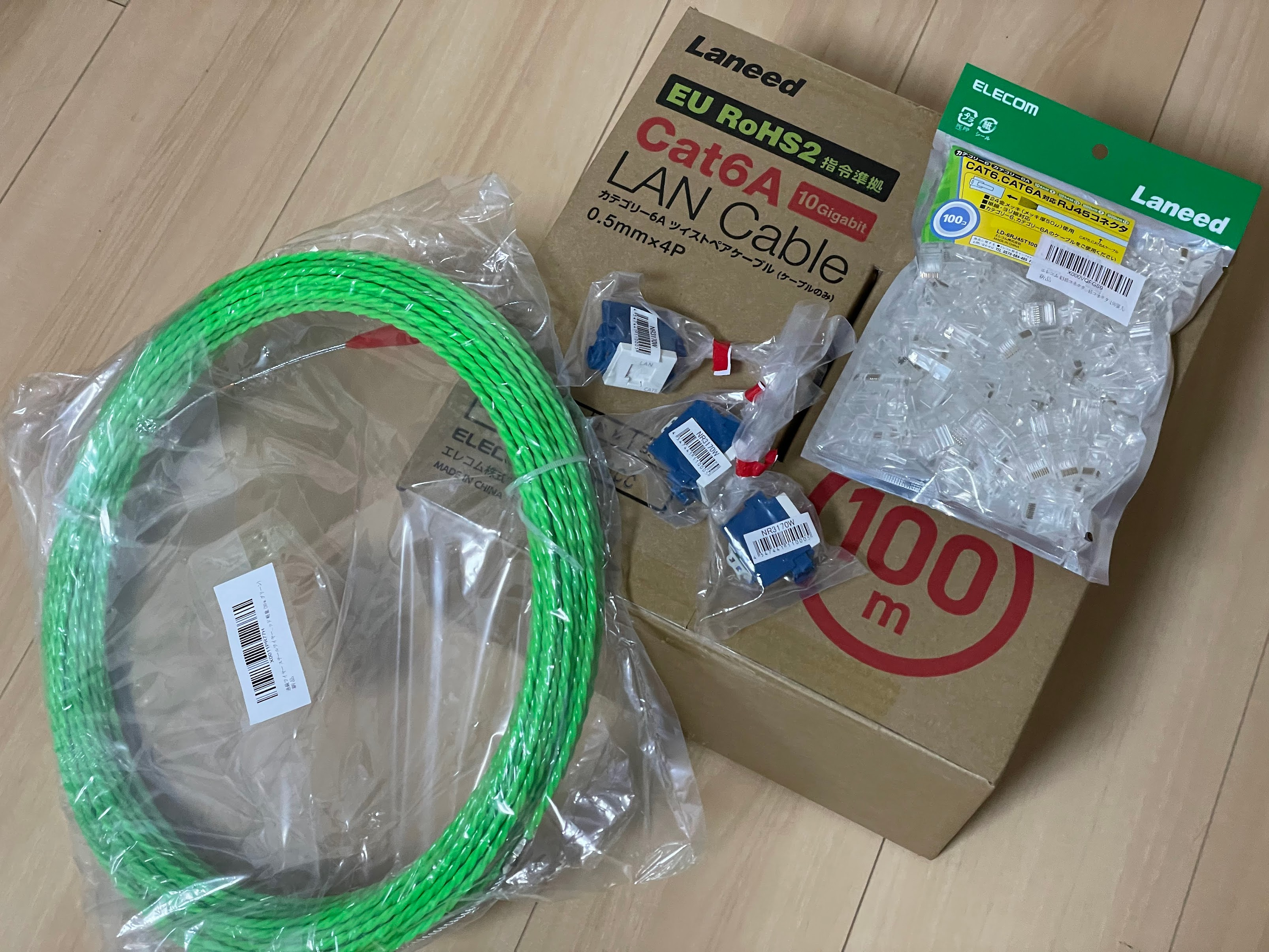 なお本来はCAT.6Aの物を使うべきですが節約しました。ケーブル長が10m程度なので恐らく10G通信可能だと想像していますが、理想はCAT.6Aの物を使うべきです。