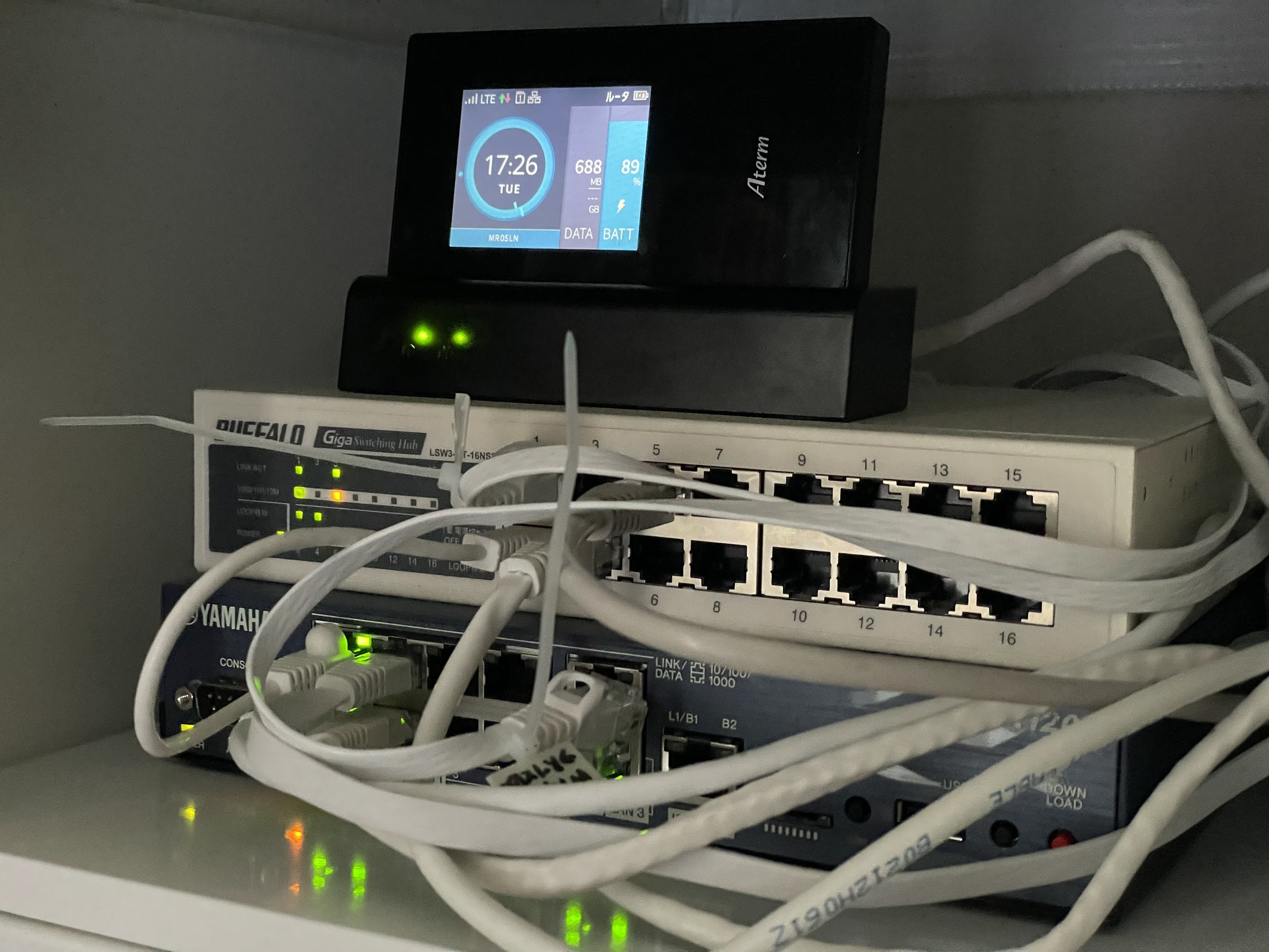 第二世代で導入したRTX1200にAT-x510-28GTXをぶら下げて大量のLANケーブルが室内を這い回るようになり、第一世代のケーブルレス状態の面影は無事なくなりました。