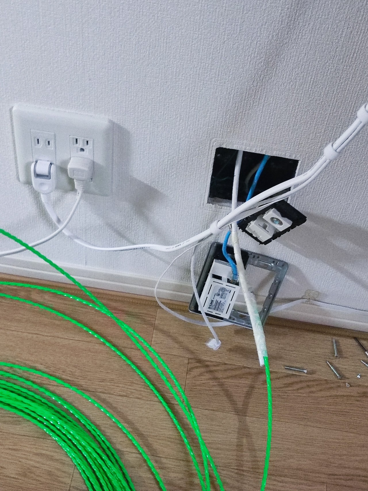 施工後はこのようにスッキリしました。作業中にコンセント周りの具材が一般的によく使われるPanasonic製のものではなく神保電器製の物だったと気づき急いでモノタロウに発注したりと施工完了まで数日時間がかかりました。