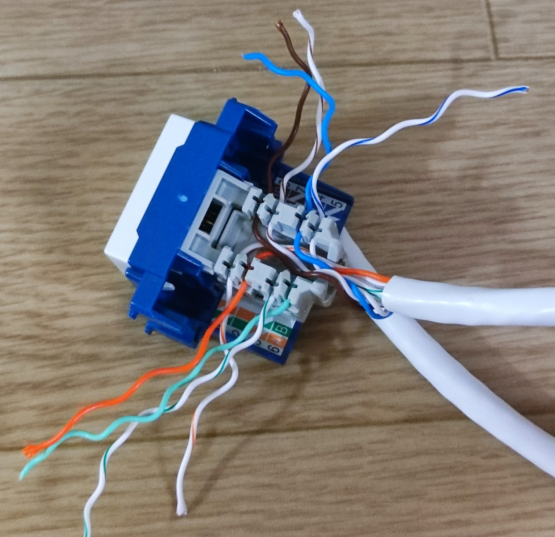 その後、RJ45用のテスターで導通を確認したら両端に適当なネットワーク機材を接続して通信確認をします。 この時、自分の腕は信用していないので壊れても良いようにUSBイーサネットアダプターを使用しました。これなら壊れても数千円の損害ですみます。