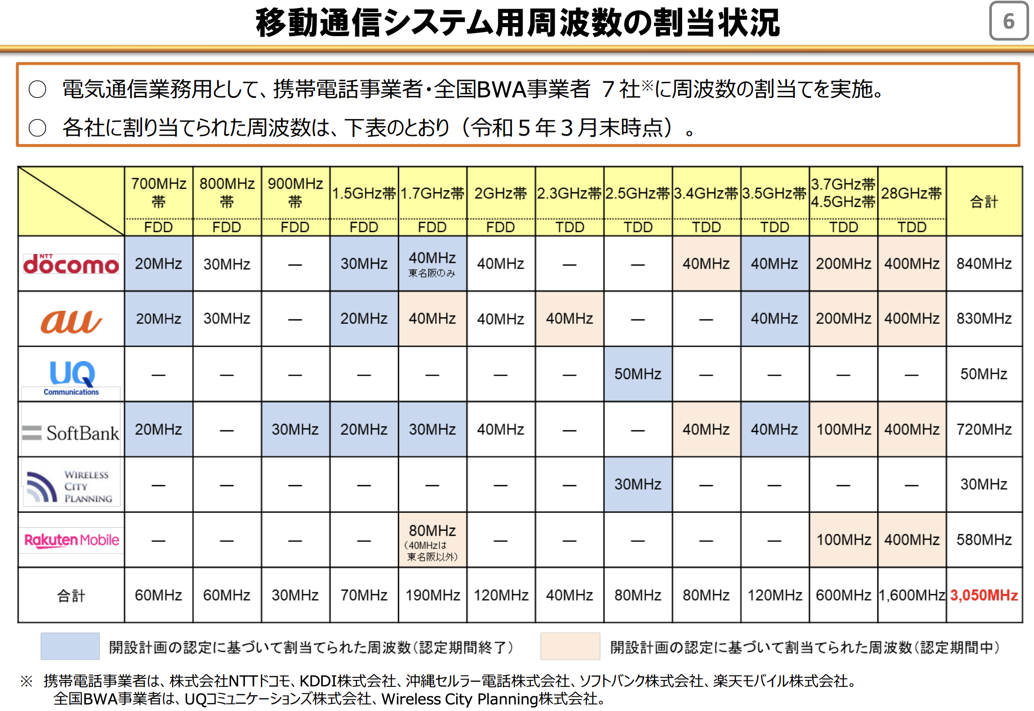 そのため使いやすい低い周波数帯は携帯電話以外でも多数利用されており貴重な帯域、プラチナバンドと呼ばれてます。ただ貴重なため幅を確保することができず、docomo、au、SoftBankは各社50Mhzの幅しか確保できていません。