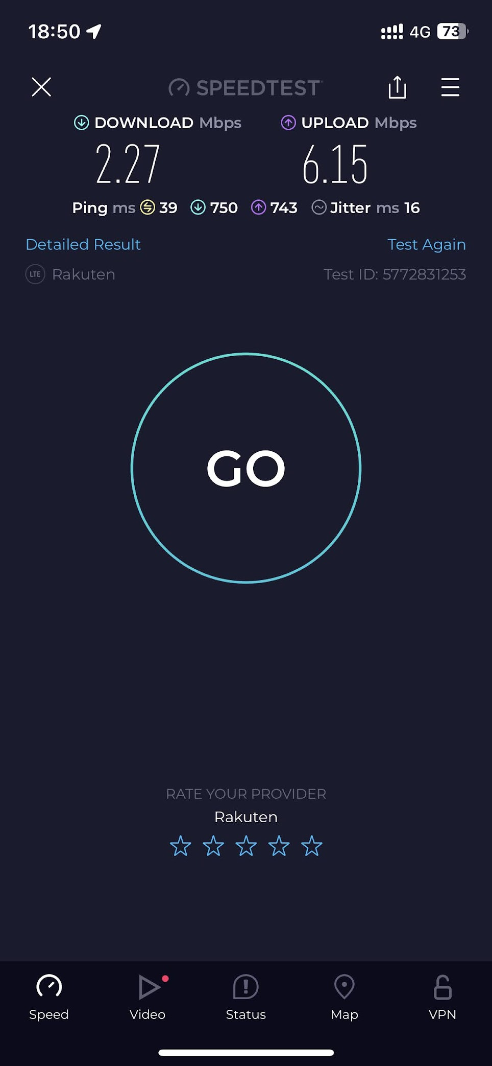 ここからは実際に体感した速度の話となります。 これから記載するauはauが提供してるpovoの回線速度であり、楽天モバイルは楽天モバイルの自社が提供してる回線速度になります。