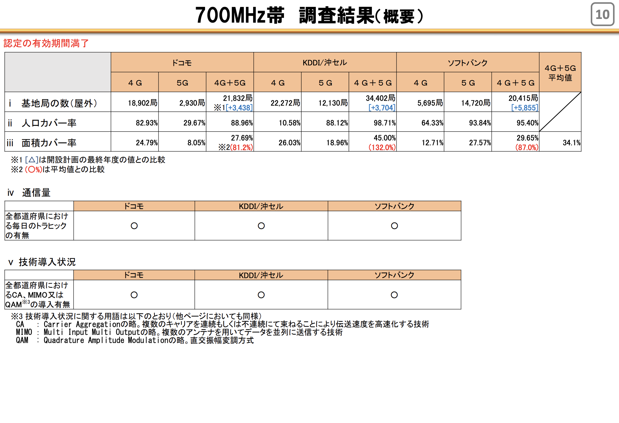 低い周波数帯の5Gとしては700Mhzなどが使われており、auとSoftBankは5Gの人口カバー率88%と94%と非常に高い数値になっている一方、docomoは30%にとどまっています。
