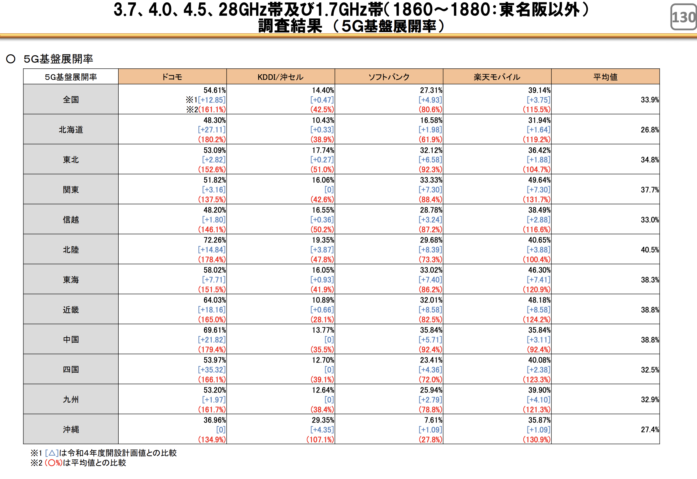 5G用として高速通信可能な高い周波数帯はいくつかありますが、これのどれかが掴める土地の割合を示した物が5G基盤展開率です。(人口カバー率ではなく無人地帯、海上を除く土地の割合のため低くなりがち)