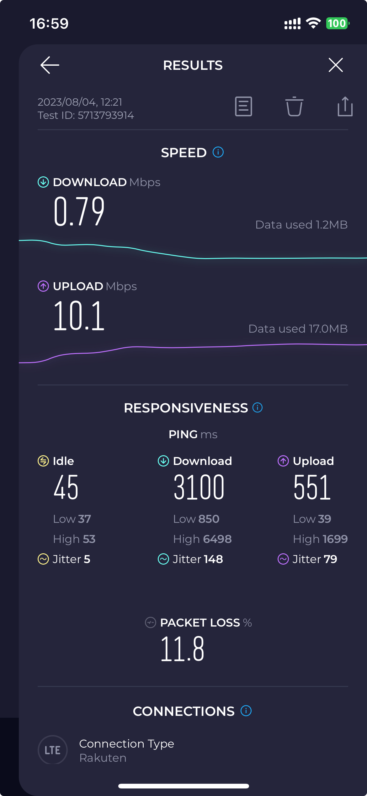 このあたりは前回記事でお伝えしたサービス開始初期の楽天モバイルの品質から大きく改善してるなと感じています。