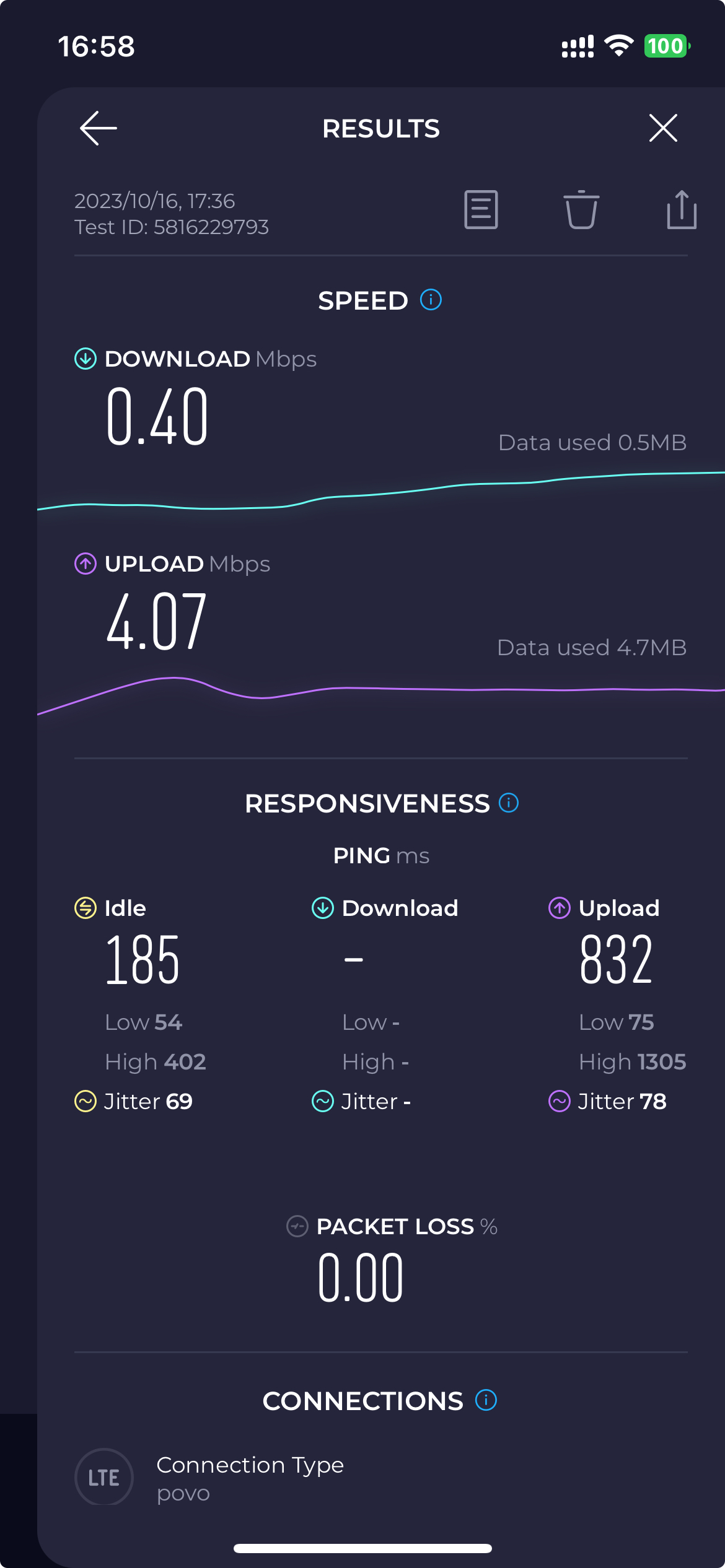 どちらも人が少ない場所で計測しており、どちらもアンテナ4本たっている状態ですが、まったく通信速度が違います。