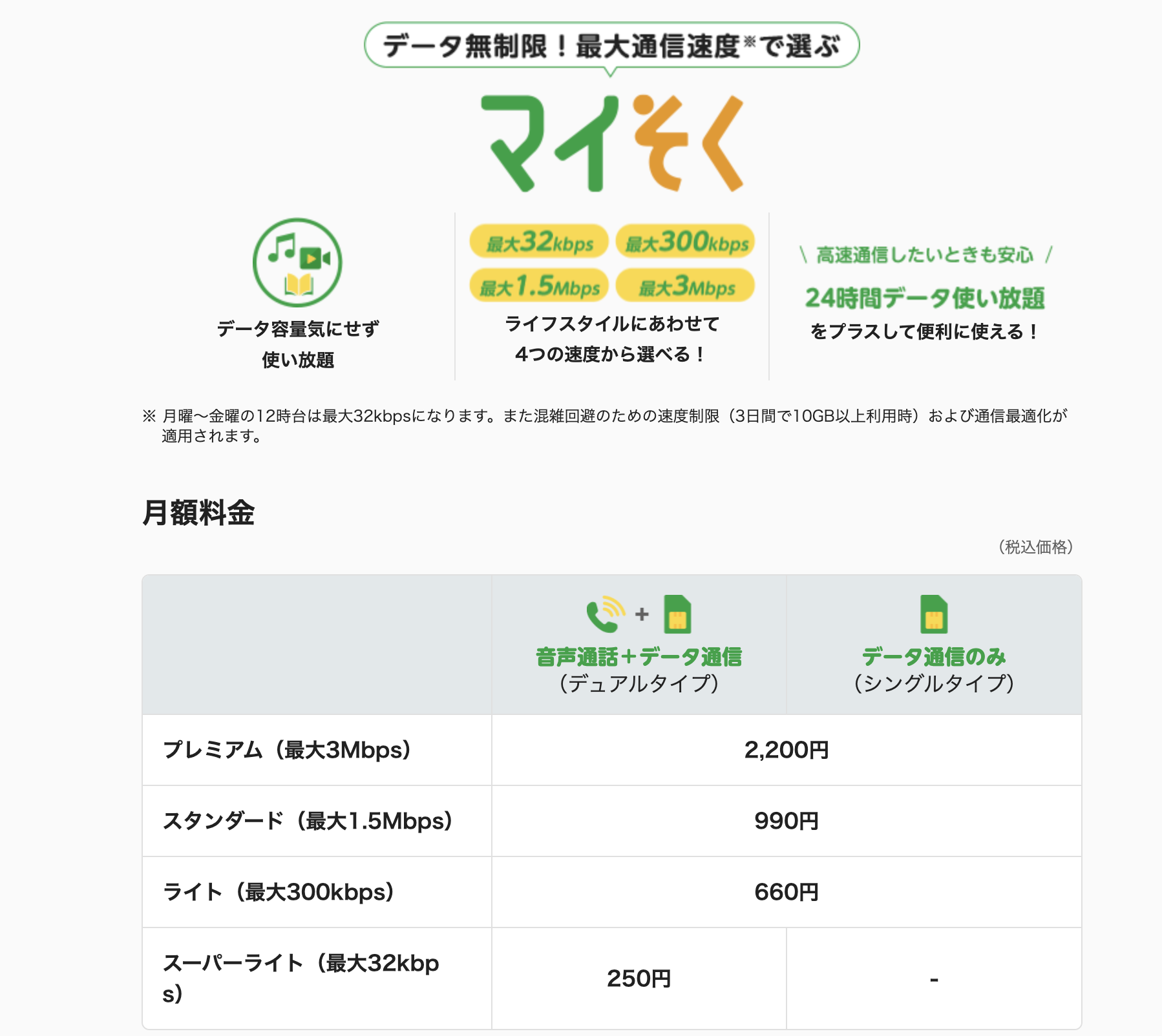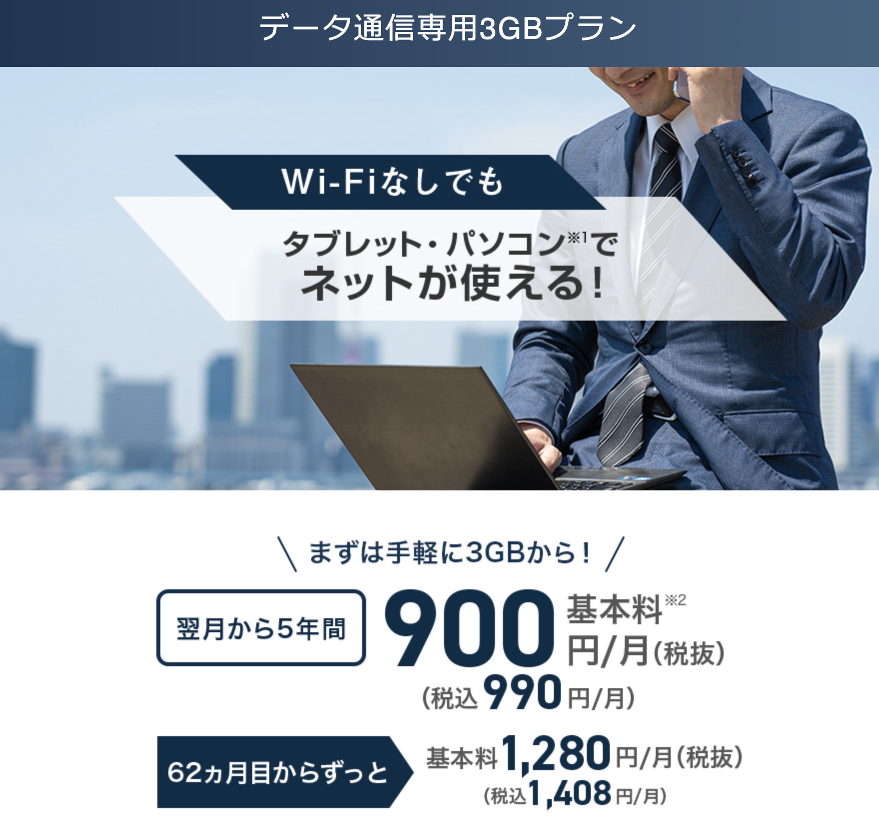 SoftBankは通信専用になりますが月額990円のプランを提供しています。 こちらは1時間単位で使い放題を追加することが可能です。