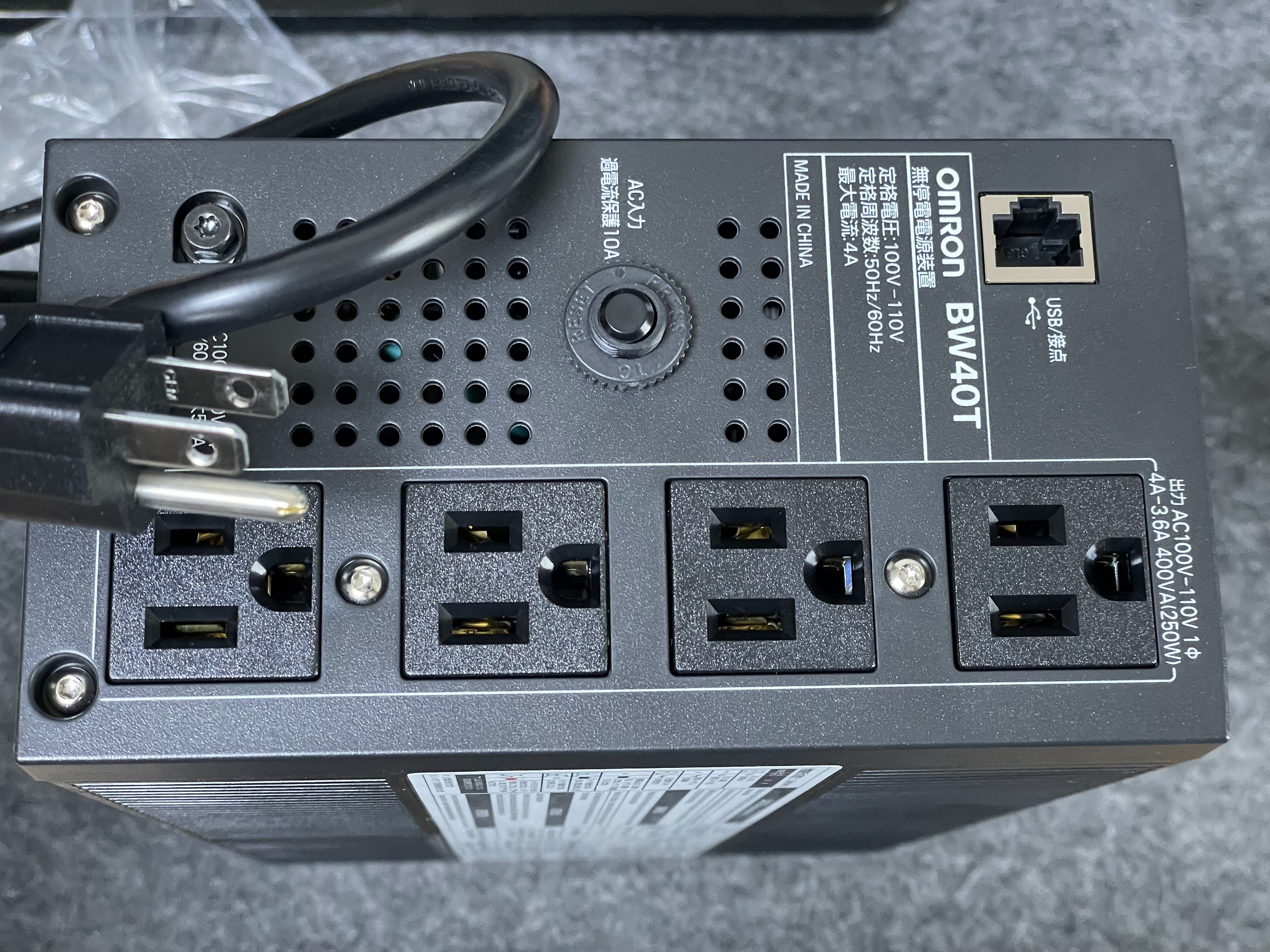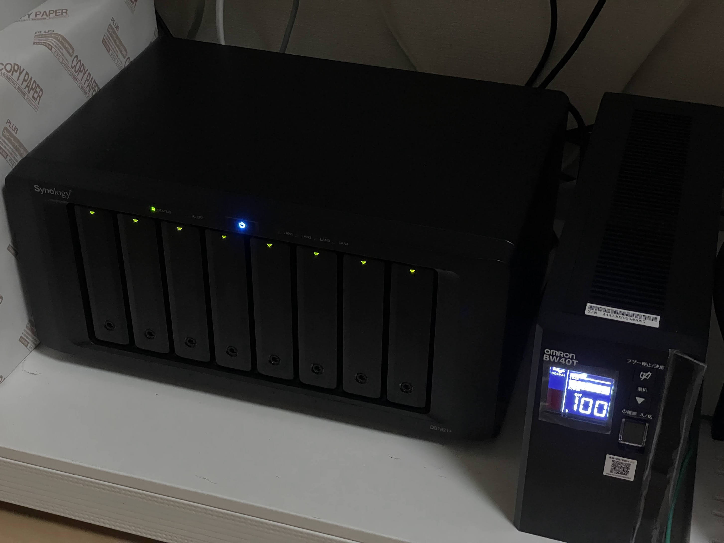 NASの設定は無事終了しましたが、このままだと停電発生時にデータが壊れる可能性があります。 そこでオムロンのBW40Tを導入しました。