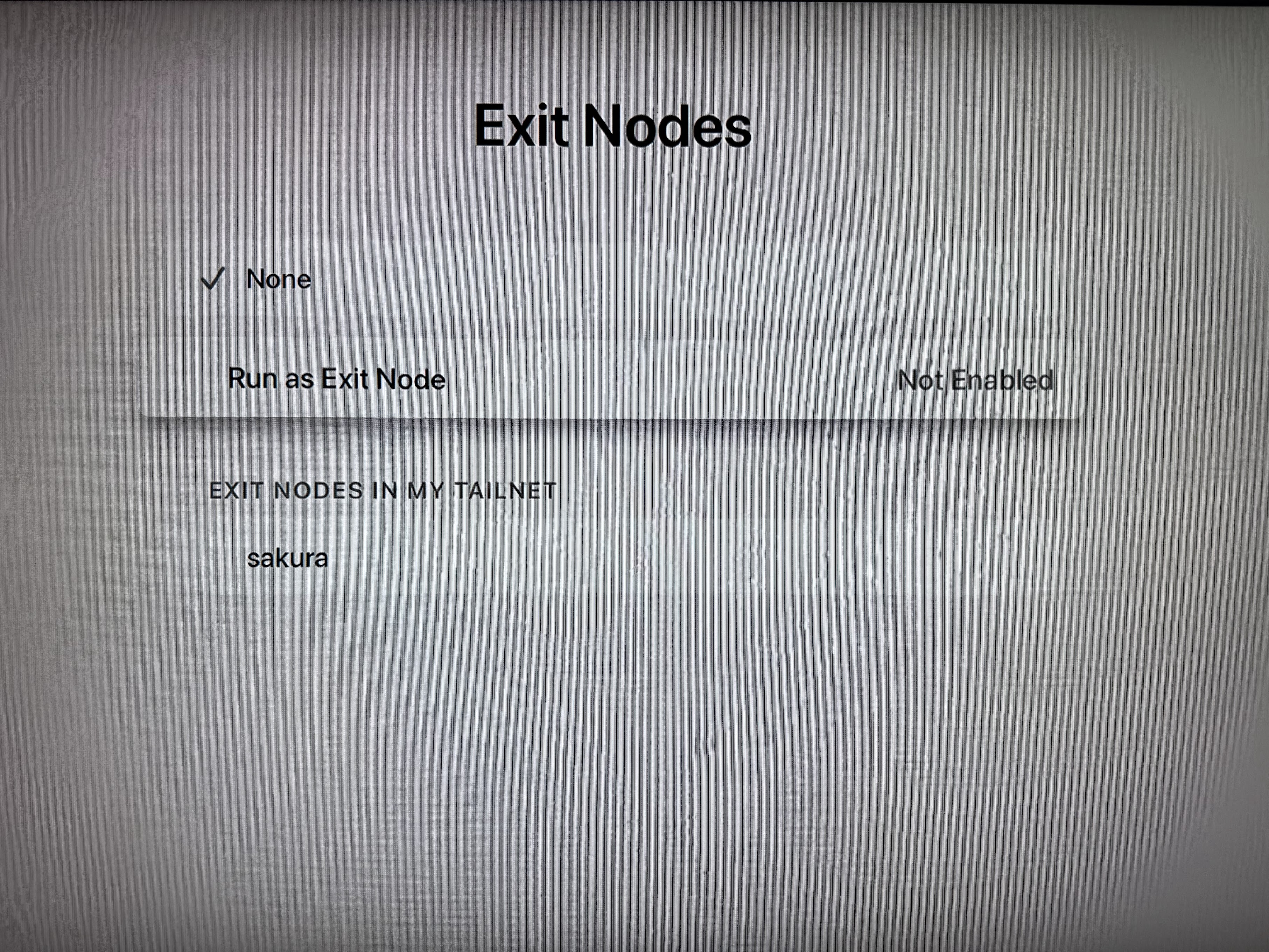 初回は「この設定を行うと、スマホからApple TV経由でインターネットに接続できるようになります」といった案内が表示されるので、「Run as Exit Node」で有効化します。