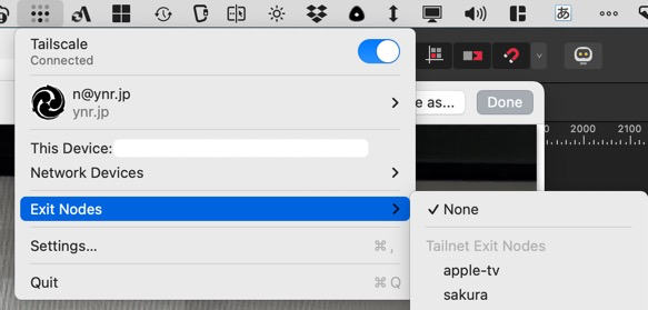 ノートPCからの場合は常駐しているTailscaleアイコンを右クリックしてExit Nodeを選択できます。