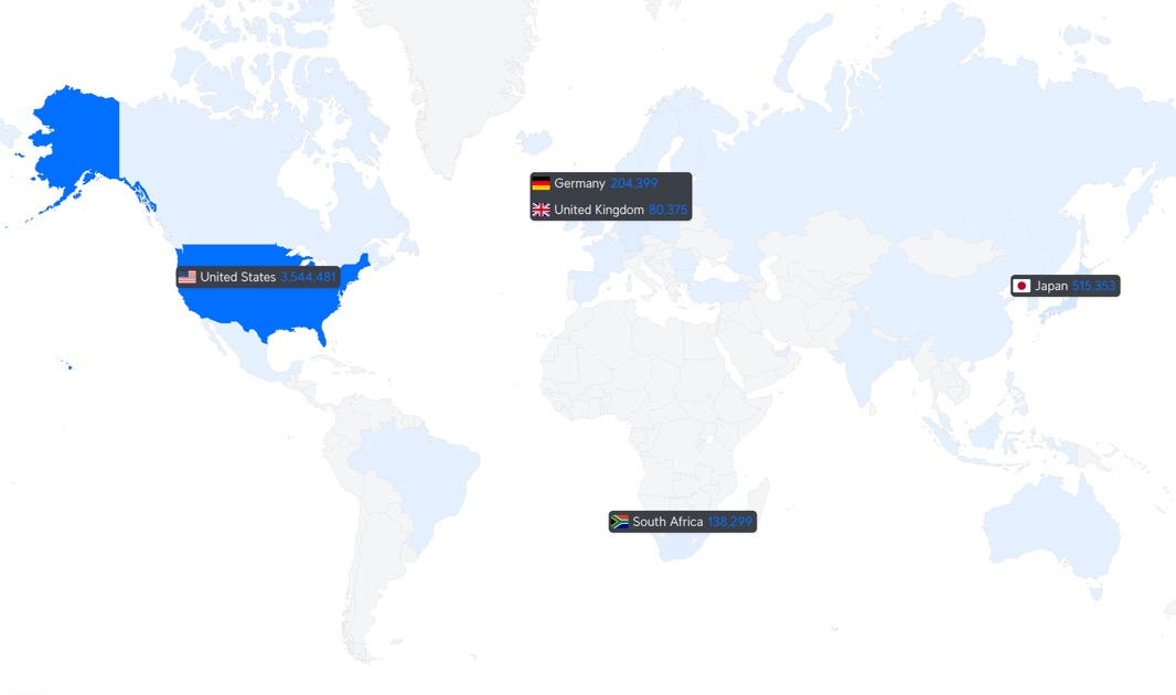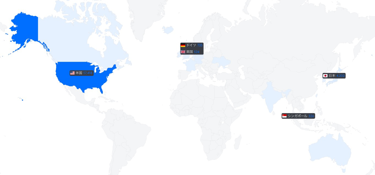 自宅からの通信先では様々なDERPサーバーを利用していましたが、とくに南アフリカへの通信数が多く発生していました。接続先が制限されたことで南アフリカ宛の通信は無くなり、全体的に海外宛の通信も減りました。