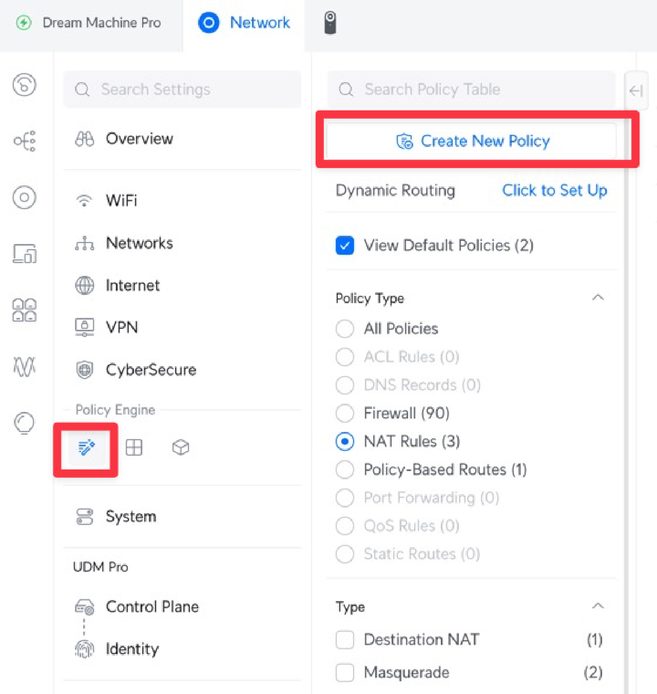 UDM側で設定からポリシーを新規作成します。ポリシーの設定は下記の画像を参考に設定してください。