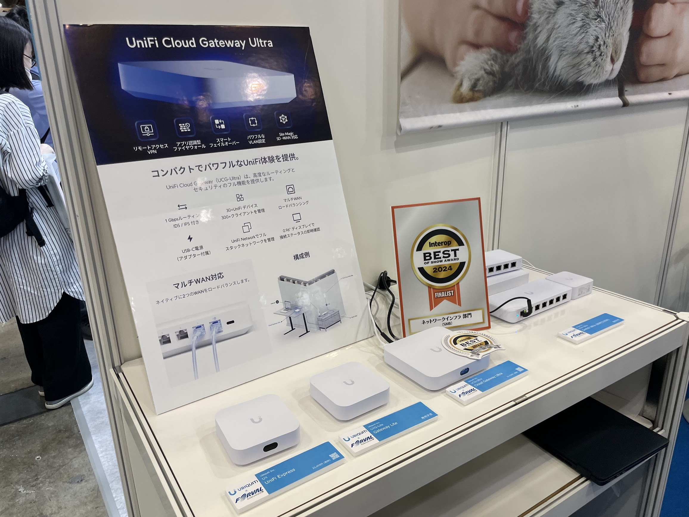 ドデカい誤家庭用機器が多数展示されているInterop Tokyo 2024にて一般家庭でも置けそうな小さなルーターが展示されていました。