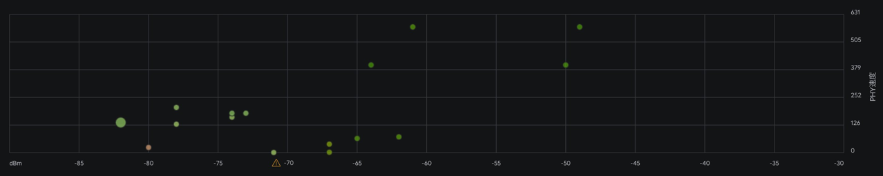 すべてのデバイスを接続しましたが電波強度不足のものはありませんでした。(-70dBmはギリギリって感じですが……)