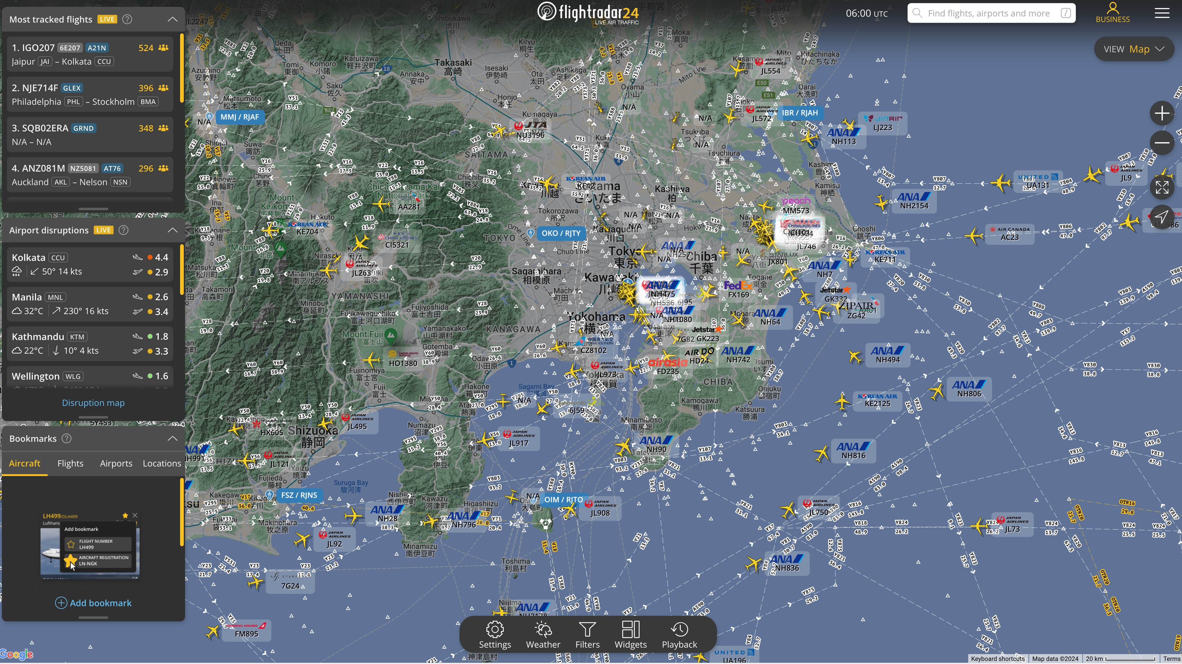 Flightradar24は、全世界の航空機の位置情報を提供するサービスです。