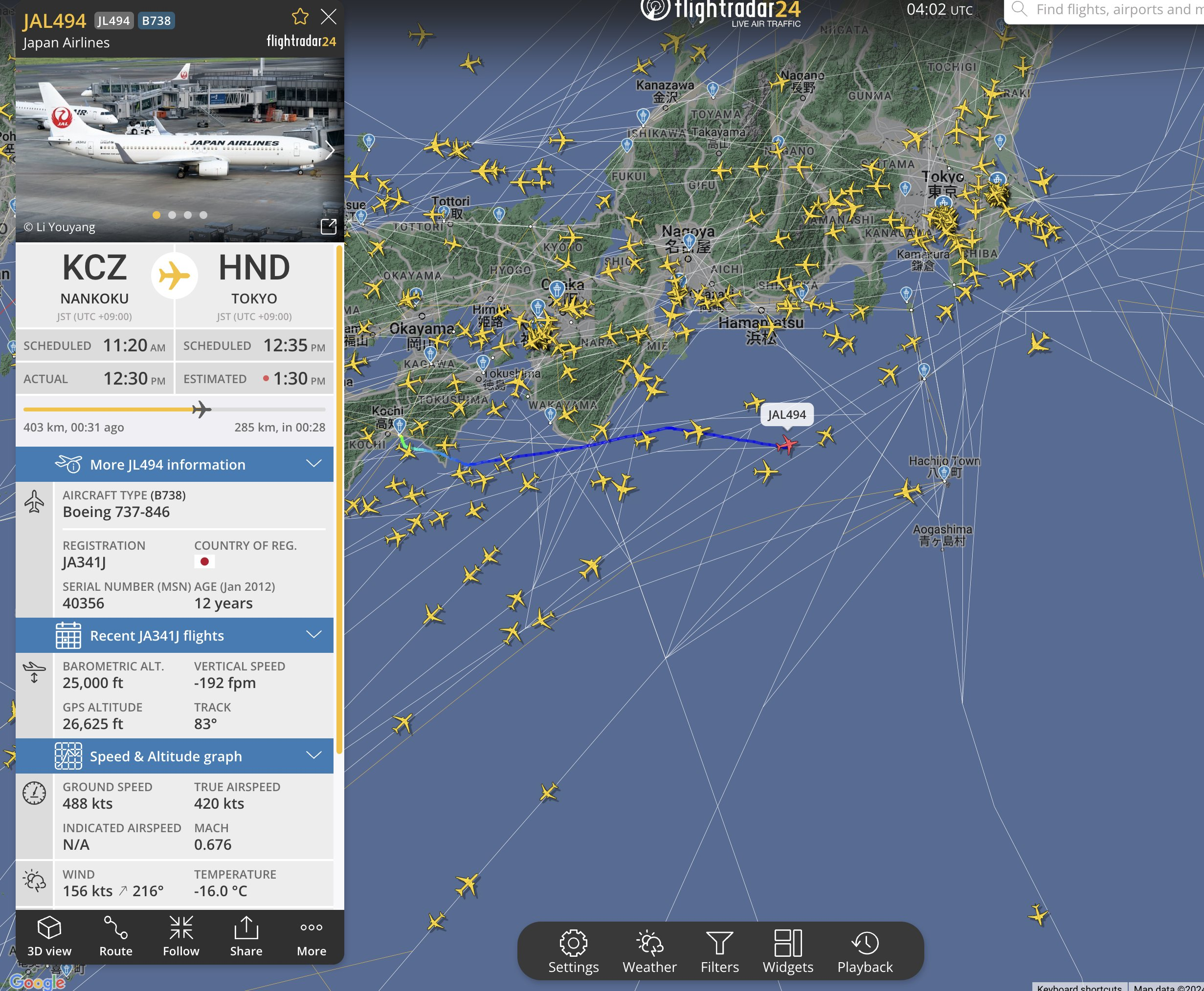 また先日は強力な温帯低気圧の影響でダイヤ乱れが発生しました。その時も追跡時間の制限なく折り返し前の便の運行情報を見られましたのでラウンジの滞在時間等の調整ができました。